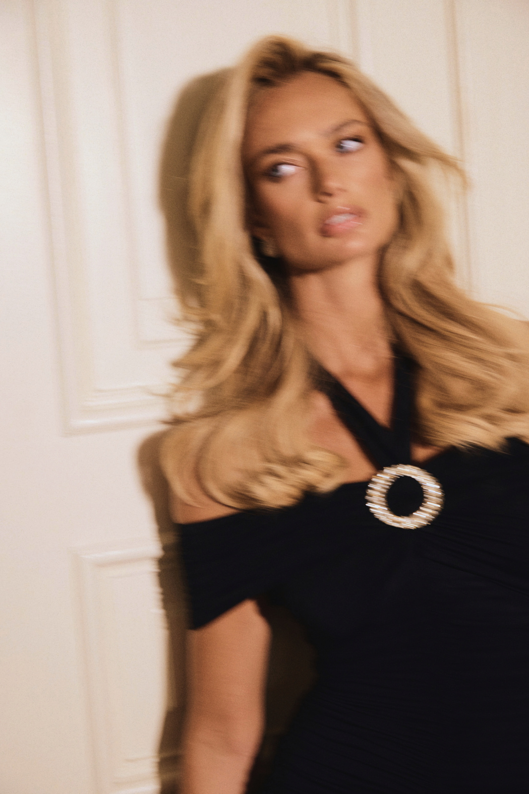 Ingrid Noir est une robe unique qui impressionne par son élégance et son souci du détail. Fabriqué dans un tissu doux et extensible qui s'adapte parfaitement à la silhouette et met en valeur ses atouts. Le noir profond et classique ajoute une touche sophistiquée à la création, parfaite pour les sorties en soirée. L'encolure décolletée caractéristique dévoile subtilement les épaules, ajoutant un charme féminin, tandis que la broche décorative à la hauteur de l'encolure attire le regard et confère à la robe un aspect luxueux. La cascade centrale de tissu, tombant le long de la robe, crée un détail frappant qui ajoute de la légèreté et du dynamisme à la robe. Ingrid Noir est le choix idéal pour les occasions spéciales - il vous fera sentir élégante et sensuelle.