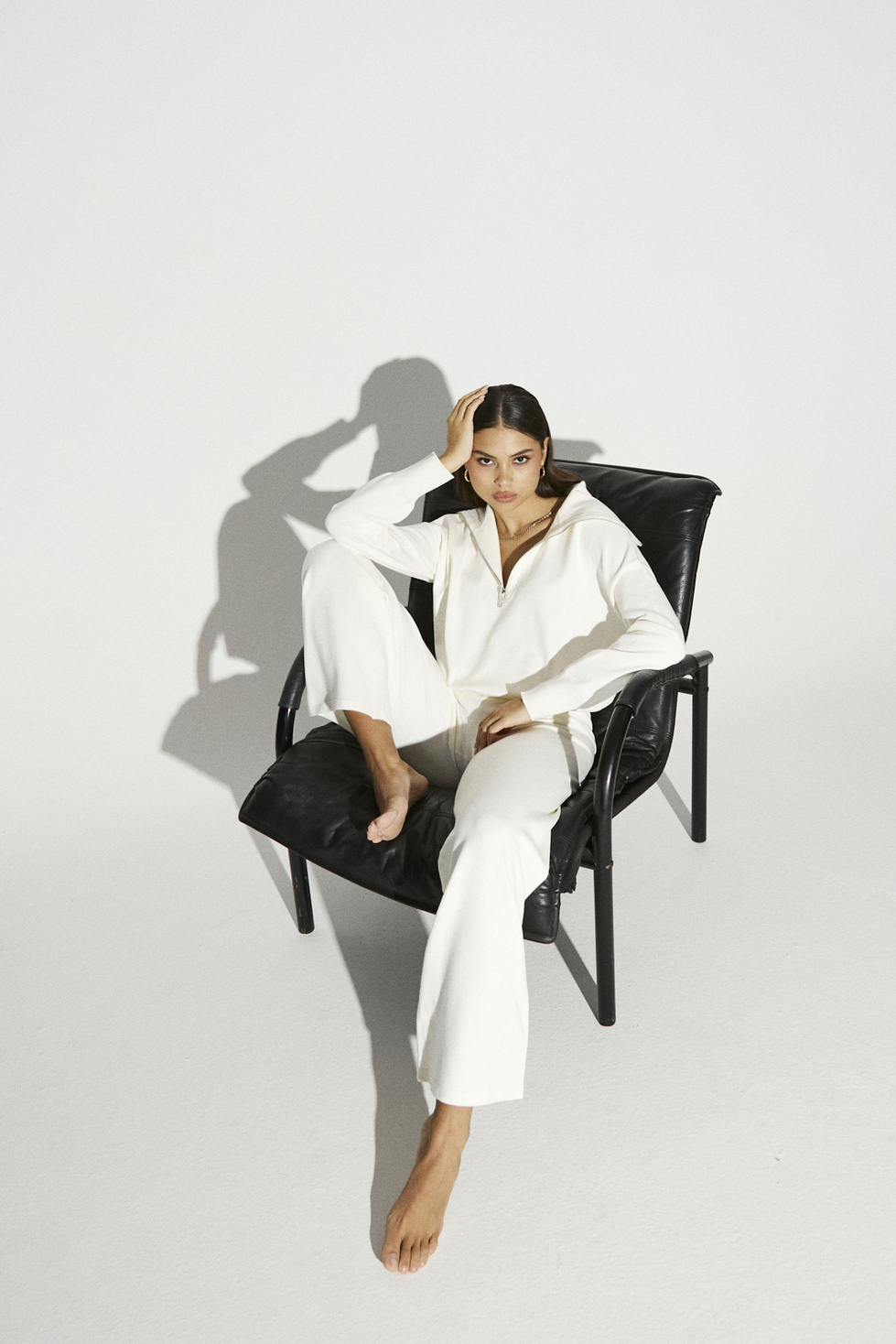 Ivy Trousers Blanc to eleganckie spodnie o klasycznym kroju, które doskonale łączą styl z wygodą. Wykonane z wysokiej jakości materiału, charakteryzują się prostą, lekko rozszerzaną nogawką, która wydłuża sylwetkę i nadaje jej smukłości. Model dostępny jest w eleganckim kolorze ecru, który podkreśla ich uniwersalny i ponadczasowy charakter. Wysoki stan podkreśla talię, a minimalistyczny design sprawia, że spodnie świetnie sprawdzają się zarówno w casualowych, jak i bardziej formalnych stylizacjach. Stwórz idealny zestaw, łącząc je ze sweterkiem Ivy Zip, aby uzyskać harmonijny i ponadczasowy look, który sprawdzi się na każdą okazję.