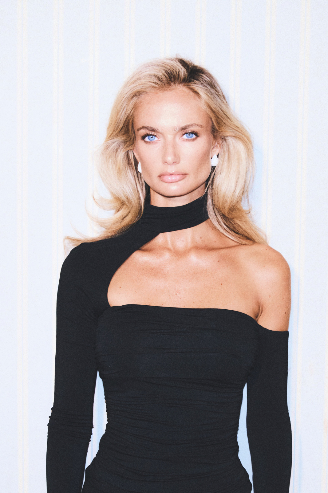 THAIS TOP NOIR to asymetryczna bluzka o niezwykle zmysłowym kroju. Wykonana jest z podwójnej warstwy dzianiny. Jedno ramię pozostaje odkryte, drugie otula dopasowany rękaw połączony z eleganckim golfem, tworząc wyjątkową linię sylwetki. Subtelne drapowanie materiału pięknie podkreśla kobiece kształty, a głęboka czerń dodaje charakteru i klasy. Idealna na wieczorne wyjścia, gdy chcesz wyglądać nowocześnie i zmysłowo.